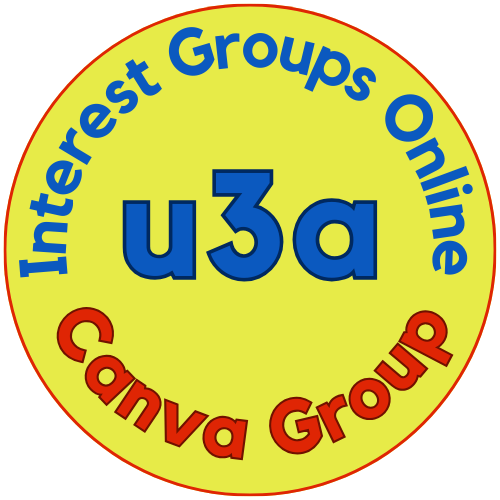 There are four Canva online groups: two Canva Course groups, meeting on the 2nd and 4th Mondays of the month (at 2pm and 4pm), and two Canva Projects groups, meeting on the 1st and 3rd Mondays of the month (at 2pm and 4pm). To join one of these groups you must be a member of IGO (Interest Groups Online) - details of the groups and IGO joining instructions are